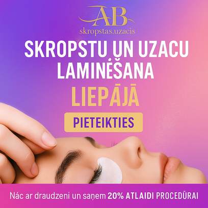 Esmu skropstu un uzacu meistare Liepājā. Piedāvāju skropstu un uzacu laminēšanu, krāsošanu, uzacu arhitektūru un sejas vaksāciju, izmantojot tikai profesionālus materiālus. Katrs klients saņem personīgu pieeju, komfortablu apkalpošanu un ilgstošu rezultātu.